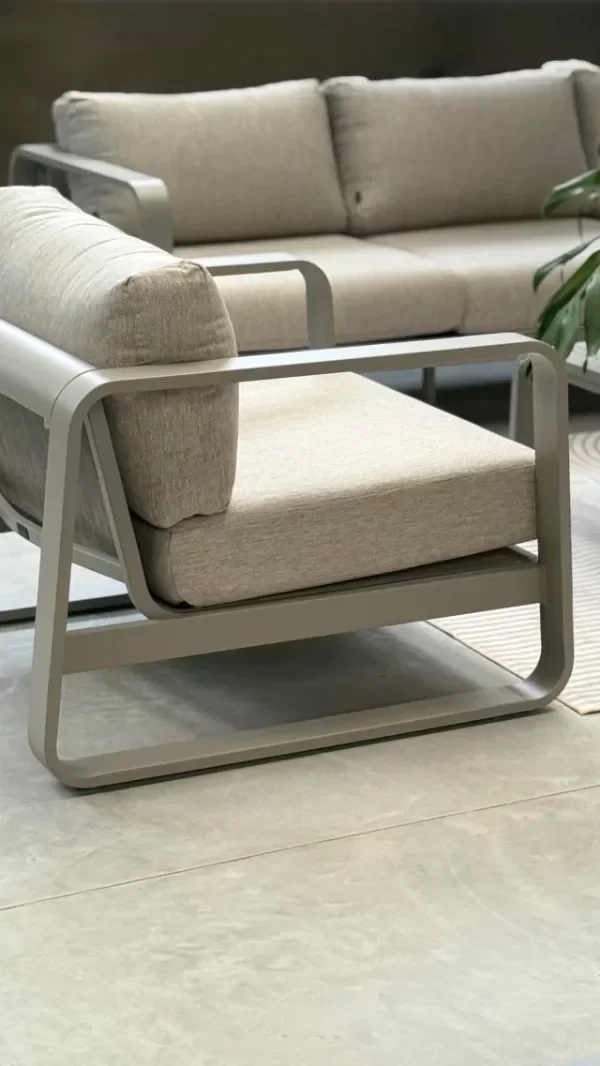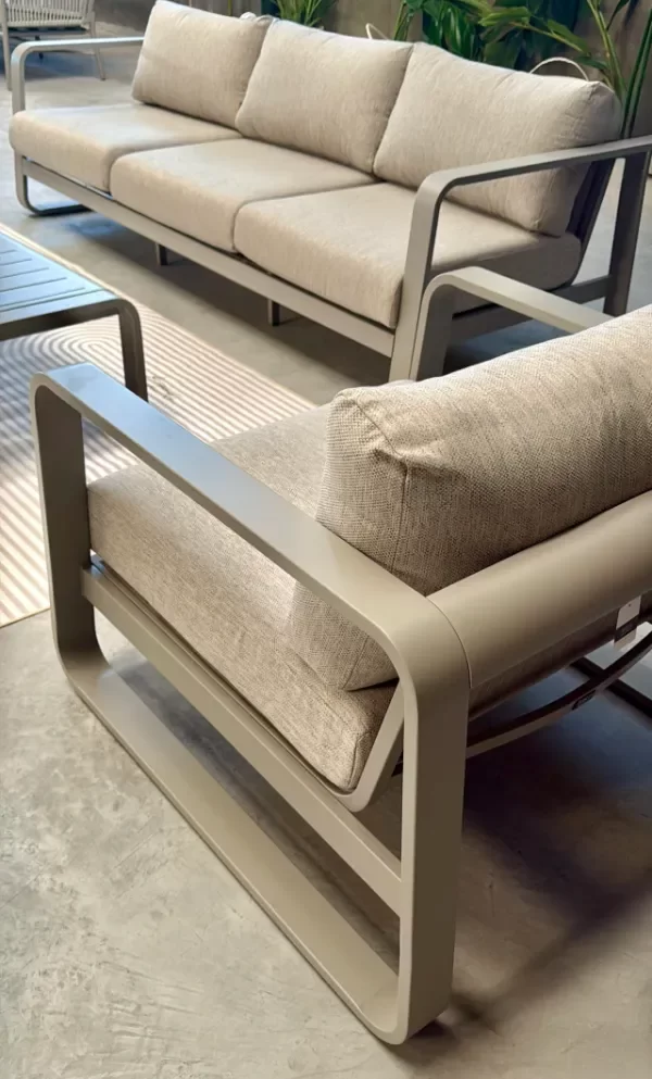Almohadones en asiento y respaldo tapizados en tela Spun, (100%poliester hilado).