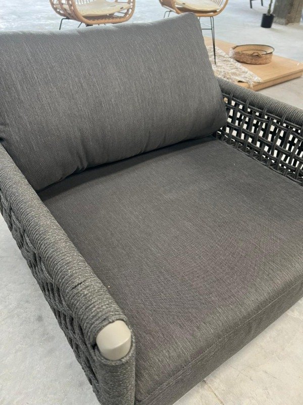 Almohadones en asiento y respaldo, tapizados en poliester.