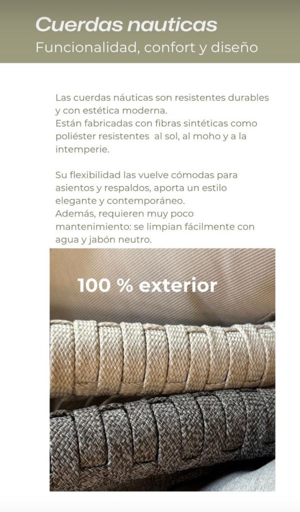 Almohadones en asiento y respaldo, tapizados en poliester.