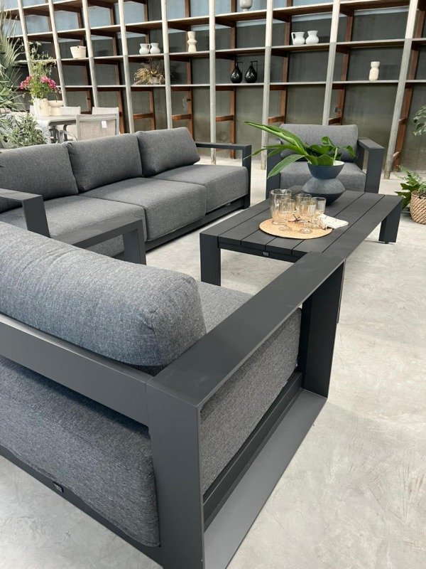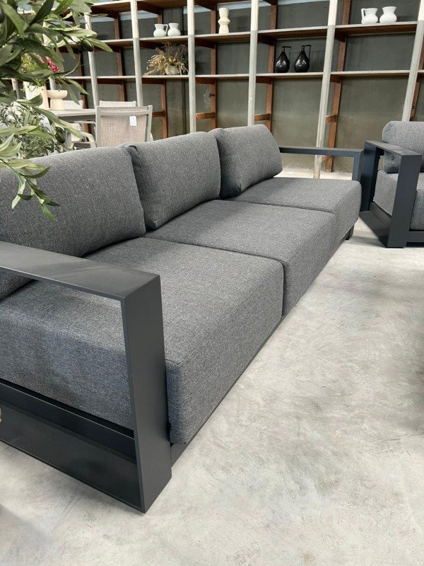 Almohadones en asiento y respaldo tapizados en tela de poliester hilado.