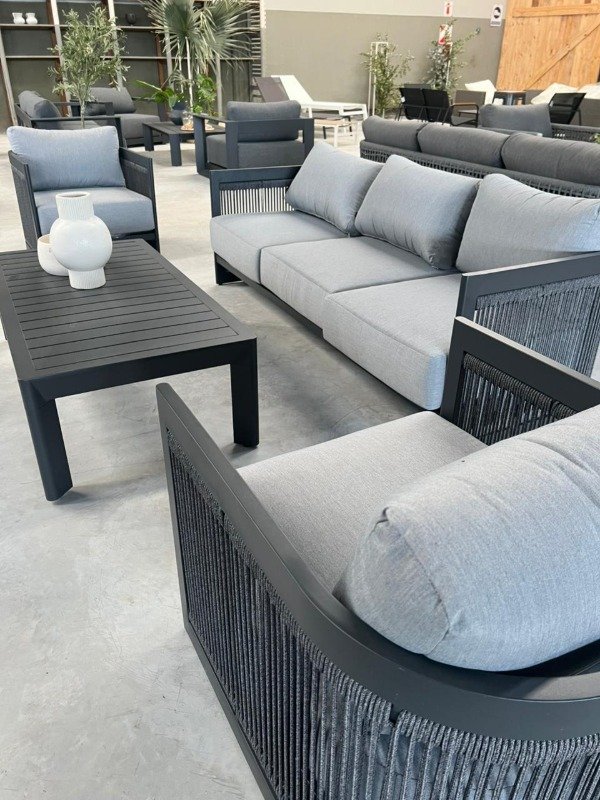 Set de Exterior con estructura de Aluminio pintado bajo proceso powder coating.